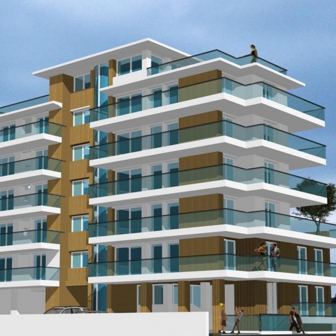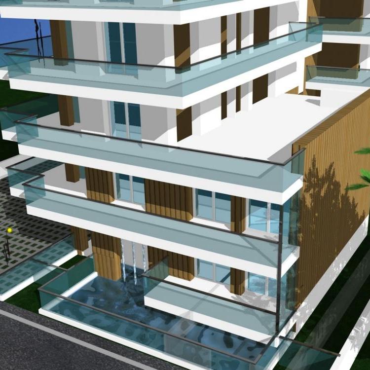 AQUA è composta da un corpo unico, costituito da un piano rialzato (+1,20 mt.) e altri 5 piani, dove trovano alloggio 15 appartamenti di tre diverse tipologie e metrature. Si può accedere alla residenza dall’accesso carrabile, dall’ingresso pedonale centrale dove si trovano le cassette portalettere e i videocitofoni, oppure dall’accesso secondario che porta direttamente al parcheggio per le biciclette. Al piano terra si trovano poi i posti auto e le cantine. Il piano rialzato ospita la hall di ingresso con il dedicato terrazzamento condominiale ed un appartamento bicamera con terrazzo fronte e retro. Dal primo al quarto piano trovano sede tre appartamenti per piano (due bilocali e un trilocale). Il quinto piano ospita i due attici a cui è riservato l’accesso al lastrico solare, ad uso esclusivo, che si trova in copertura.